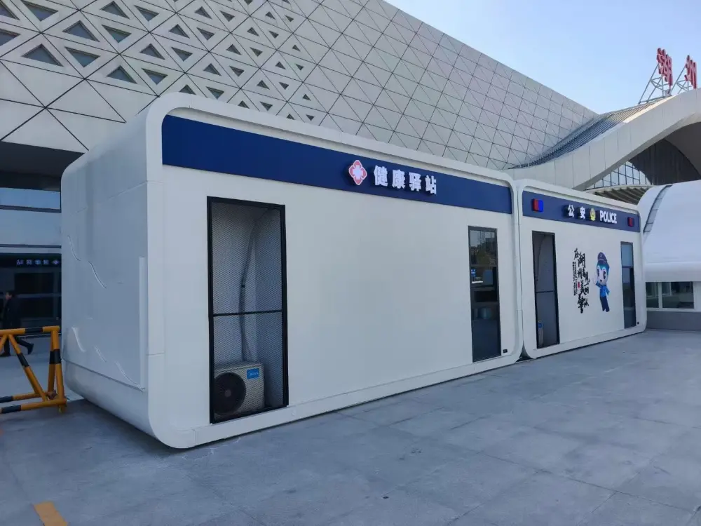 3. Entièrement préfabriqué et entièrement intégré, prêt à l'emploi en 2 heures : L'usine réalise la préfabrication à 100 % de la maison entière, avec les murs, les portes et fenêtres, les conduites d'eau et d'électricité, les plafonds intérieurs et les appareils sanitaires, tous intégrés et expédiés depuis l'usine. Aucune soudure ni décoration secondaire n'est nécessaire sur chantier, juste le levage et le nivellement, ainsi que les branchements d'eau et d'électricité. Une cabine individuelle complète peut être livrée dans les 2 heures, prête à l'emploi immédiatement, sans être limitée par les conditions météorologiques et du site.